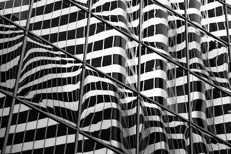 很多現(xiàn)代的建筑物也會包含大量的反光材質(zhì),這時配合外來光線,可以尋找有趣的倒影來拍攝,但記得要小心調(diào)較拍攝的角度,令反光面內(nèi)的物件較明確,容易辨認(rèn)。