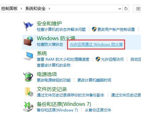 1. 打開控制面板→系統(tǒng)和安全→Windows防火墻→允許應(yīng)用通過Windows防火墻