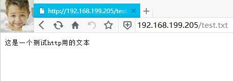 打開瀏覽器,輸入剛上傳的文件路徑http://192.168.199.205/test.txt,等待瀏覽器正確顯示你所上傳的文件內(nèi)容,則測試成功!